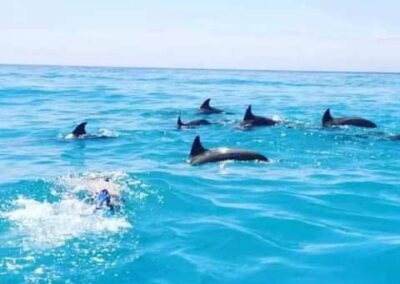 Today you are on the road all day. We will pick you up at 09:00 am at Matemwe Muyuni beach. From here we go by boat to snorkel around the island of Mnemba. In the beach restaurant you can get a local lunch consisting of rice, french fries and seafoodn served. Being able to swim with the dolphins near Mnemba Island is the highlight of many guests’ stay in Zanzibar. At the end of our excursion we will visit the sea turtles at the Nungwi Aquarium and leave between 16 and 17 o’clock to return.