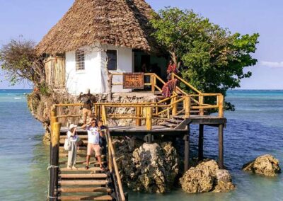 To reach our second stop, we use a boat again and make a stopon “Nakupenda Island”, or Sandbank called Love Island. Here we take the time for bathing in the Meer and a picnic. You will be served pineapple, watermelon, orange, mango, banana and other tropical fruits. And you’ll delight in rice and seafood such as grilled calamari and lobster at a local lunch.