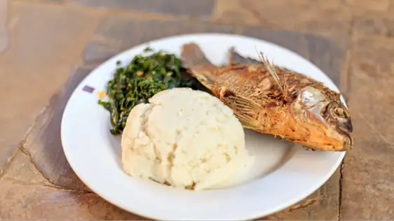 Wenn Sie ein Fan von Meeresfrüchten sind, ist dies das richtige Gericht für Sie. Mchuzi Wa Samaki ist ein Fischeintopf aus Fisch wie Kambale oder Migebuka, gekocht in einem reichhaltigen Curry aus Tomaten, Zwiebeln, Kokosnuss und Karotten. Es hinterlässt einen würzigen Nachgeschmack durch den Spritzer Limettensaft kurz vor dem Servieren.